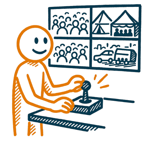 Schon in der Planungsphase analysieren wir Risiken, definieren Kamerapositionen und planen das Netzwerk – so steht Ihr Festival von Anfang an auf sicherem Fundament.