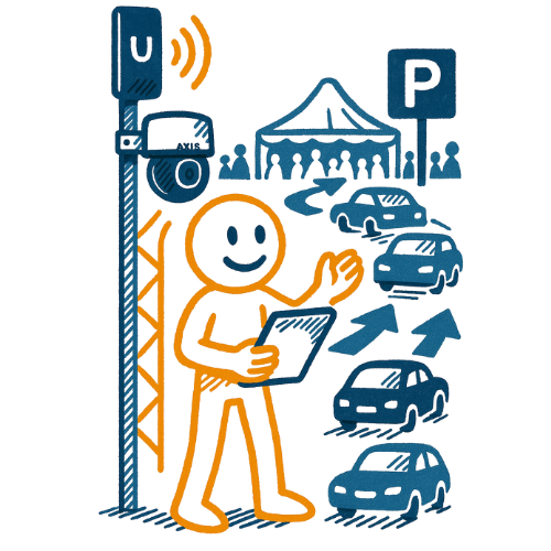 Mit intelligentem Monitoring von Zufahrten und Parkflächen vermeiden wir Staus und Überlastung. Bewegungsdaten helfen, Verkehrsflüsse live zu erkennen und gezielt zu steuern.